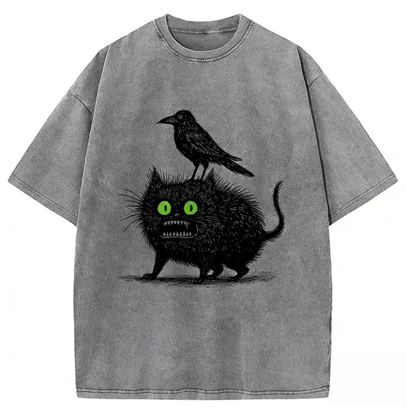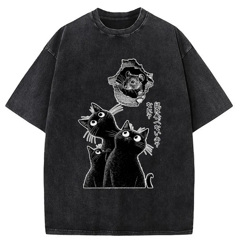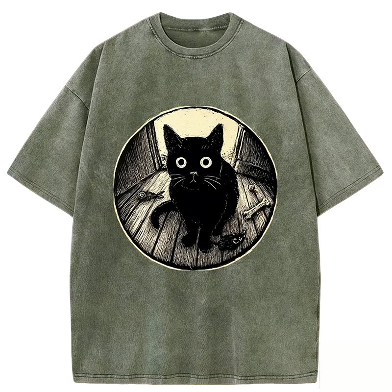 You Saw Nothing Funny Black Cat Washed T-shirt