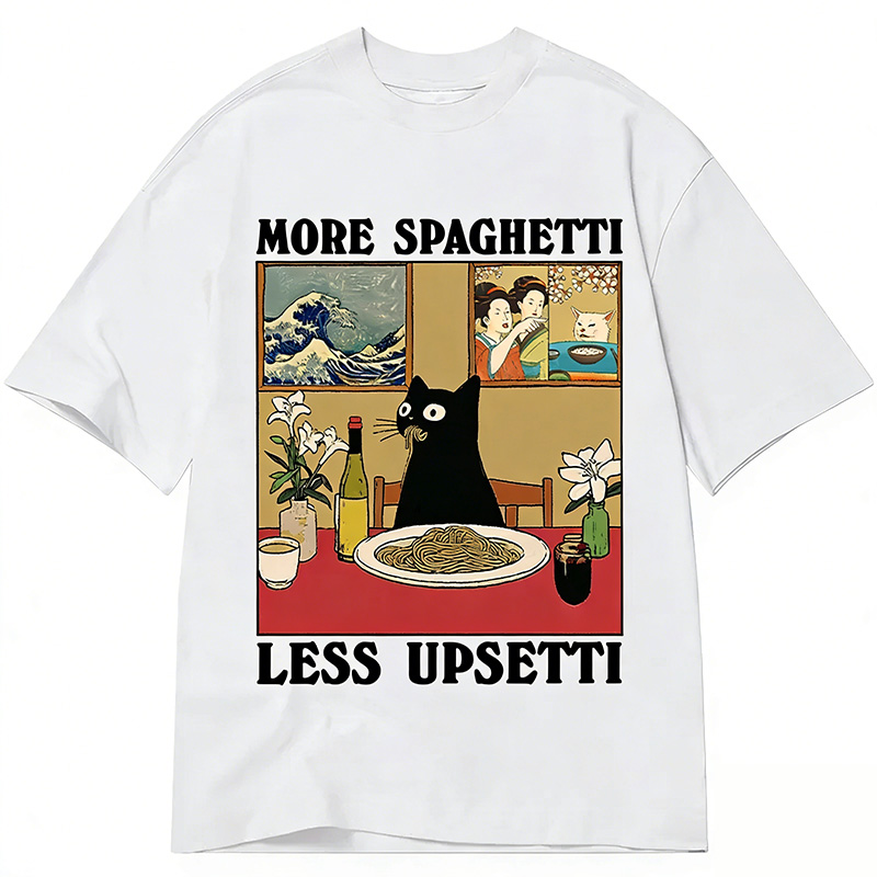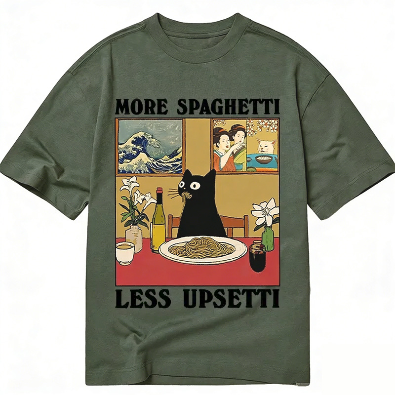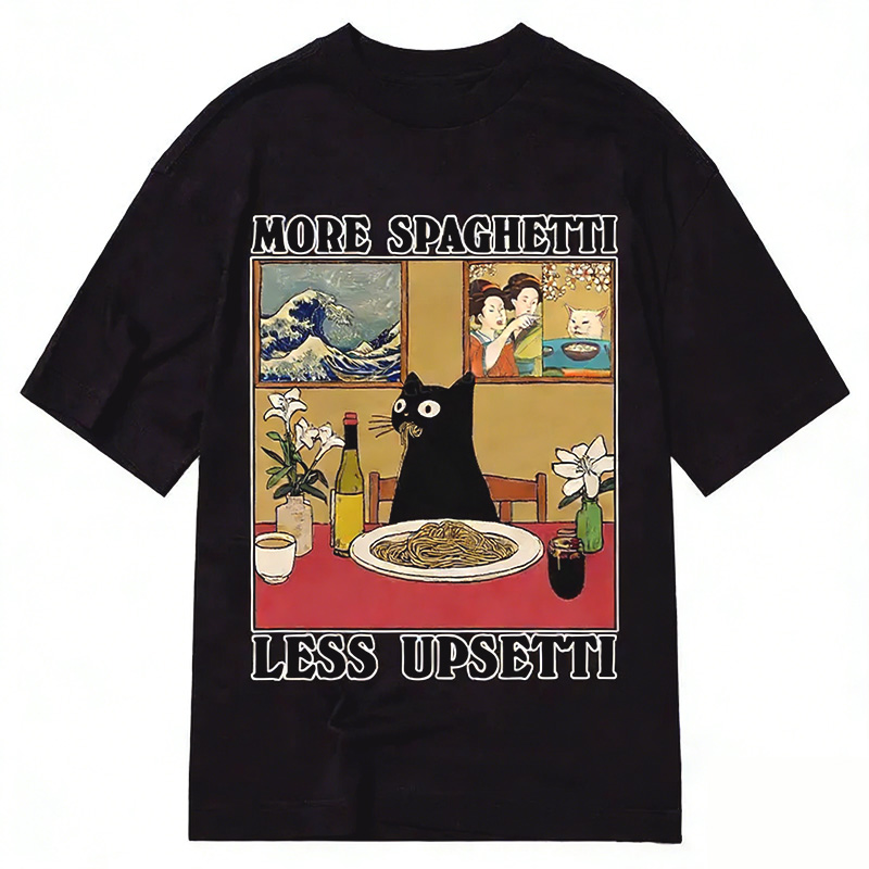 Cat Eating Spaghetti Washed T-shirt