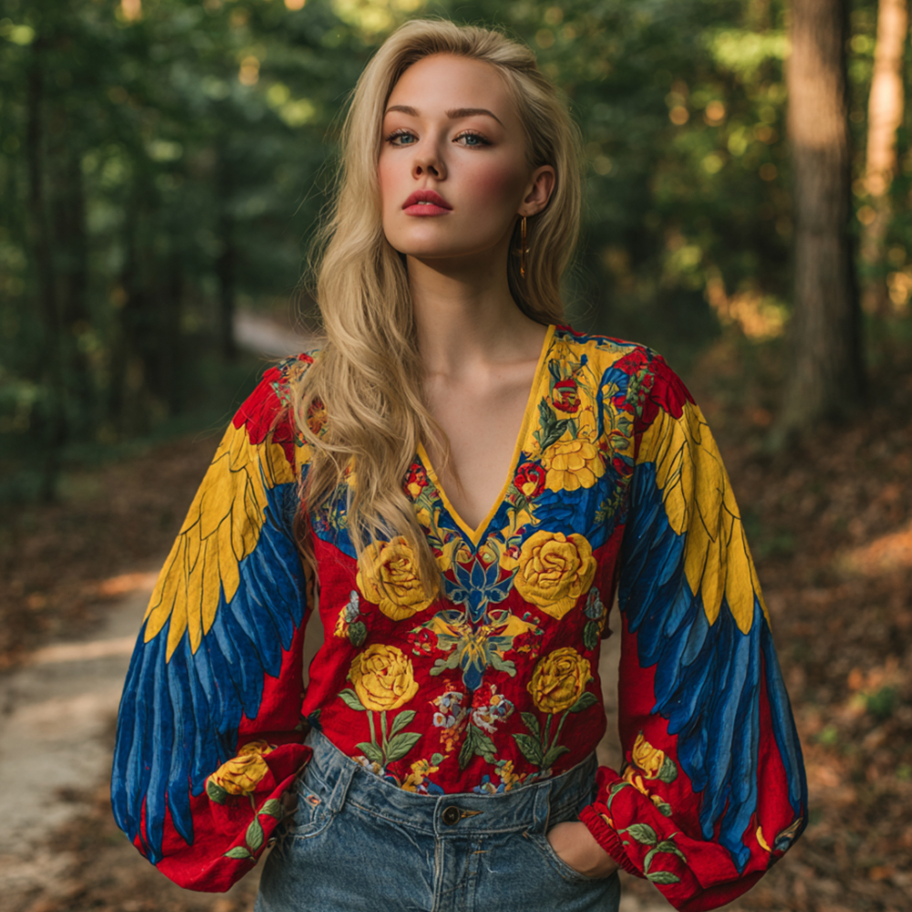 Women's Venezuelan Flag Floral Pattern Crew Neck Linen Blend Shirt