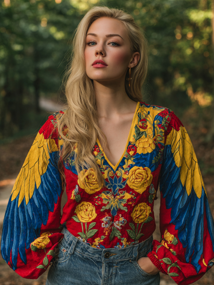 Women's Floral Embroidery Art Casual Cozy Hoodie