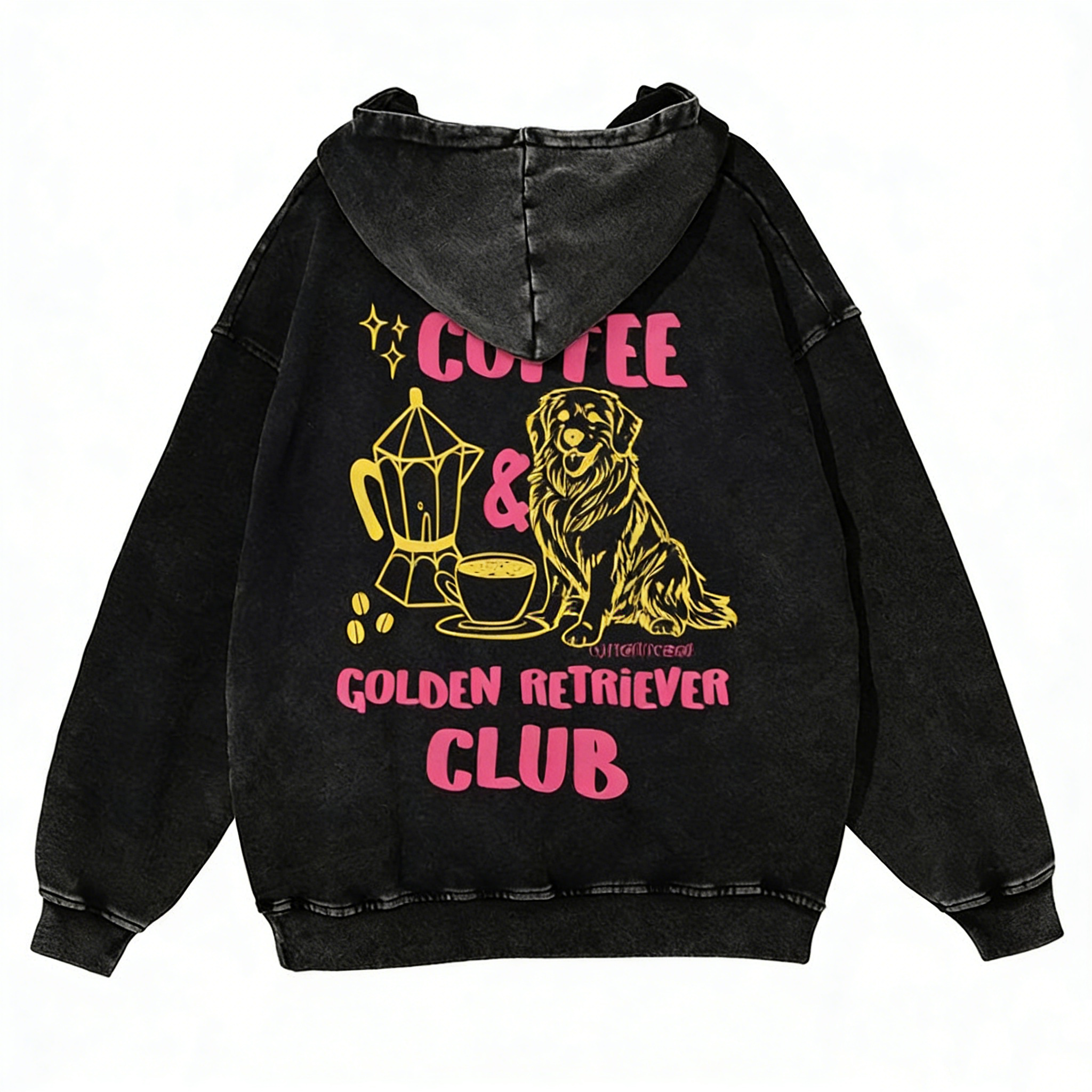 Coffee Golden Retriever Club Casual Washed Hoodie