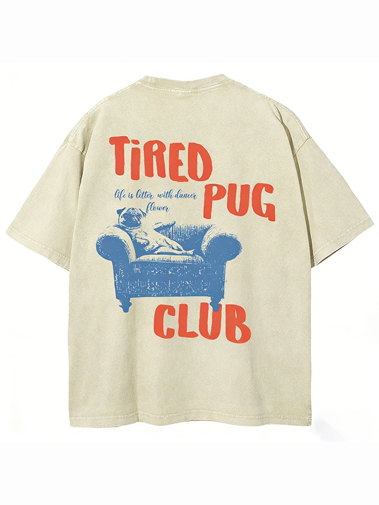 Tired Pug Club Unisex Fit Washed T-shirt