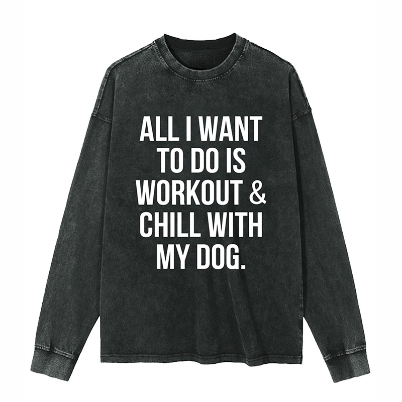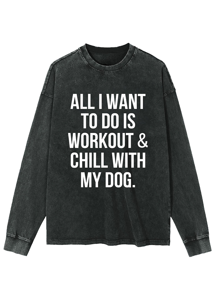 All I Want To Do Is Workout & Chill With My Dog Washed Sweatshirt