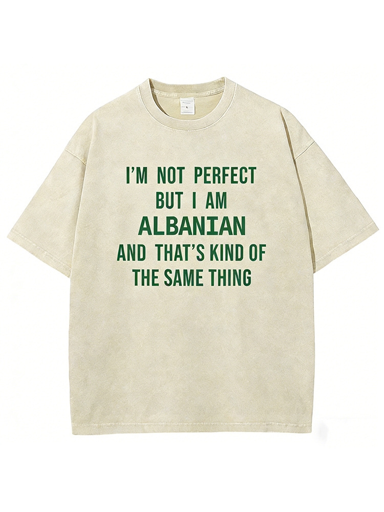 I'm Not Perfect But I Am Albanian And That's Kind Of The Same Thing Unisex Fit Washed T-shirt