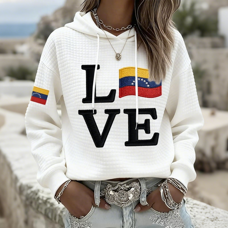Women's Love Venezuelan Flag Print Waffle Hoodie