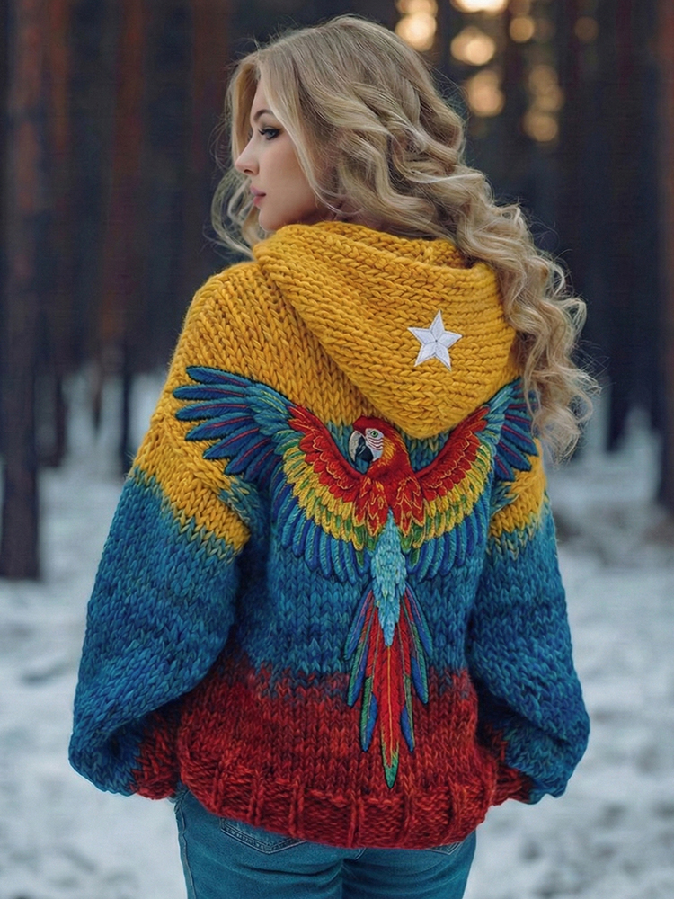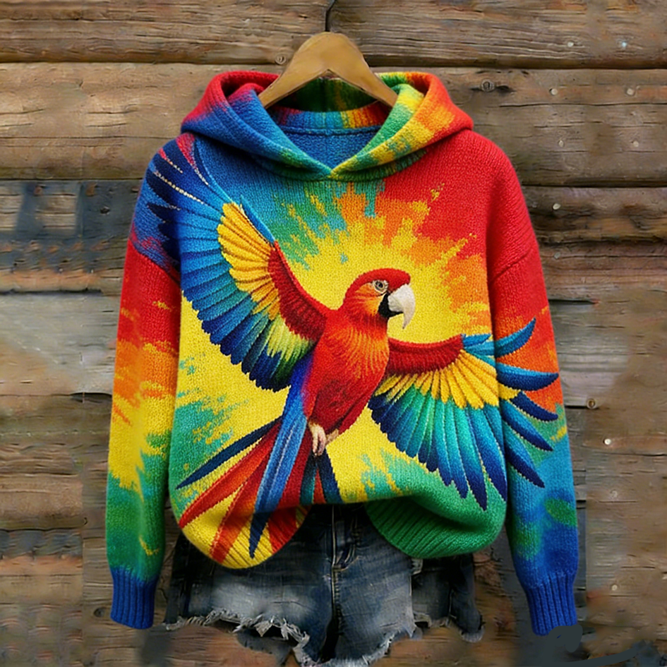 Women's Vintage Venezuelan Macaw Pattern Knit Hoodie