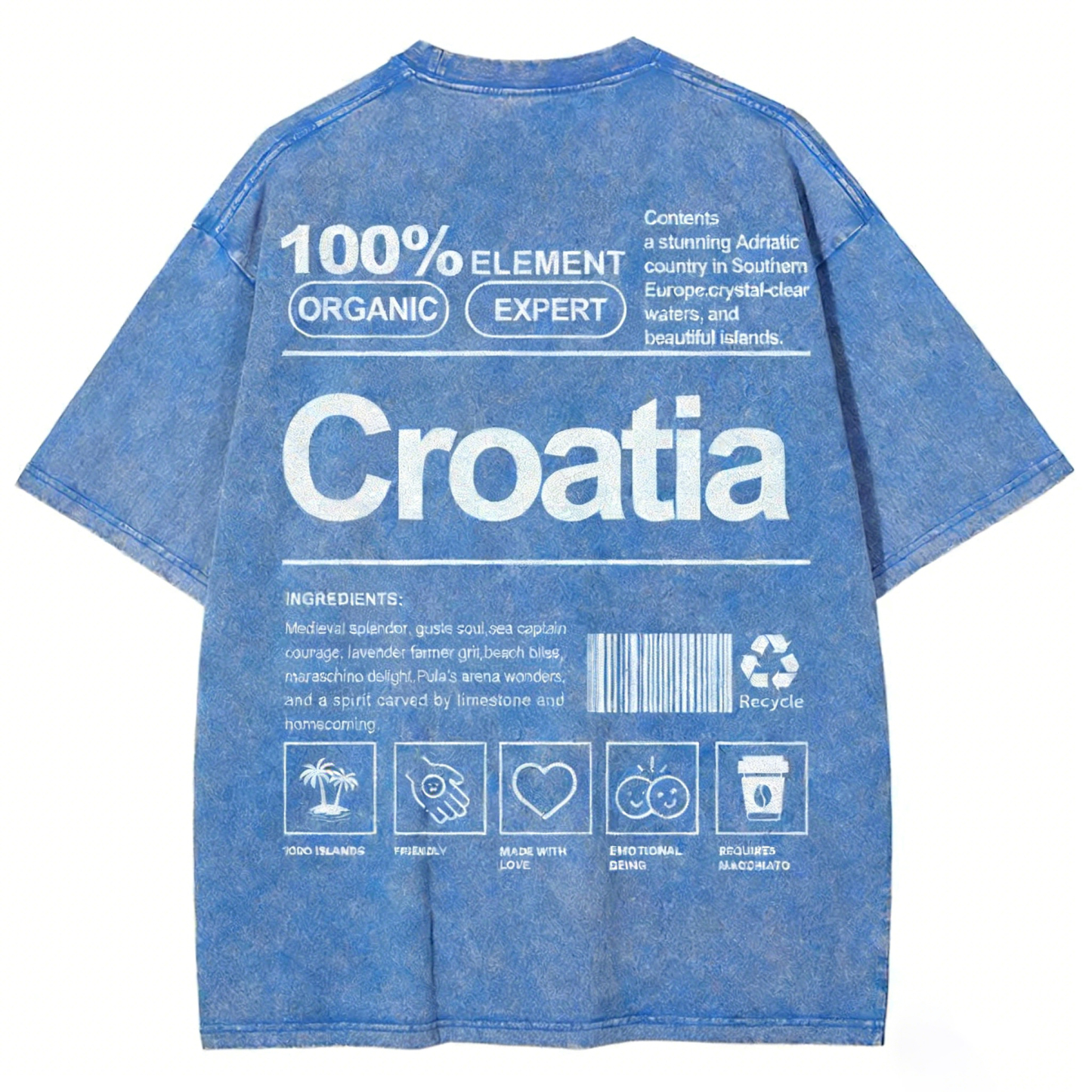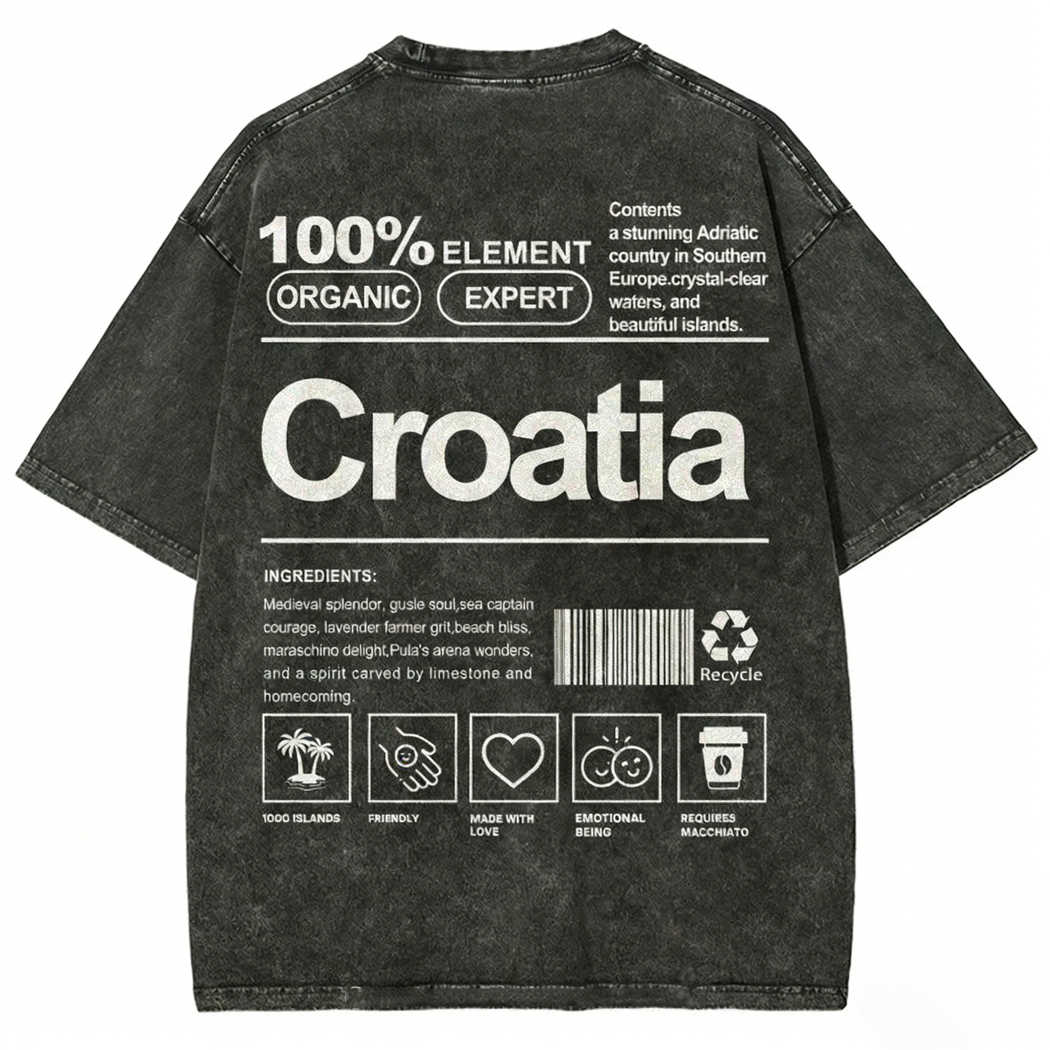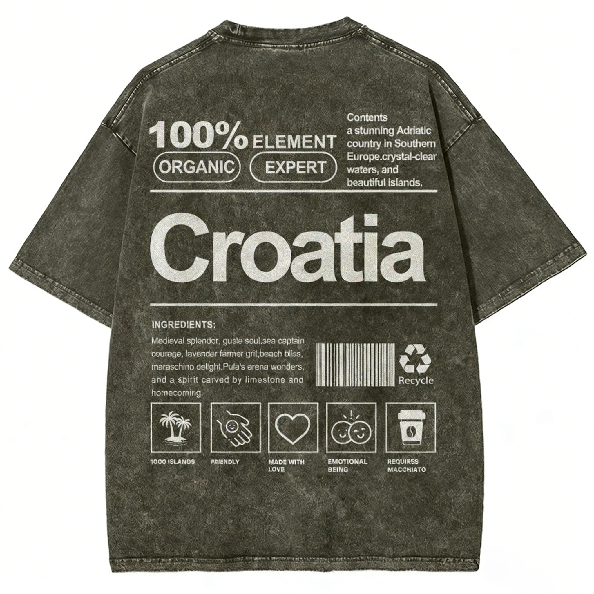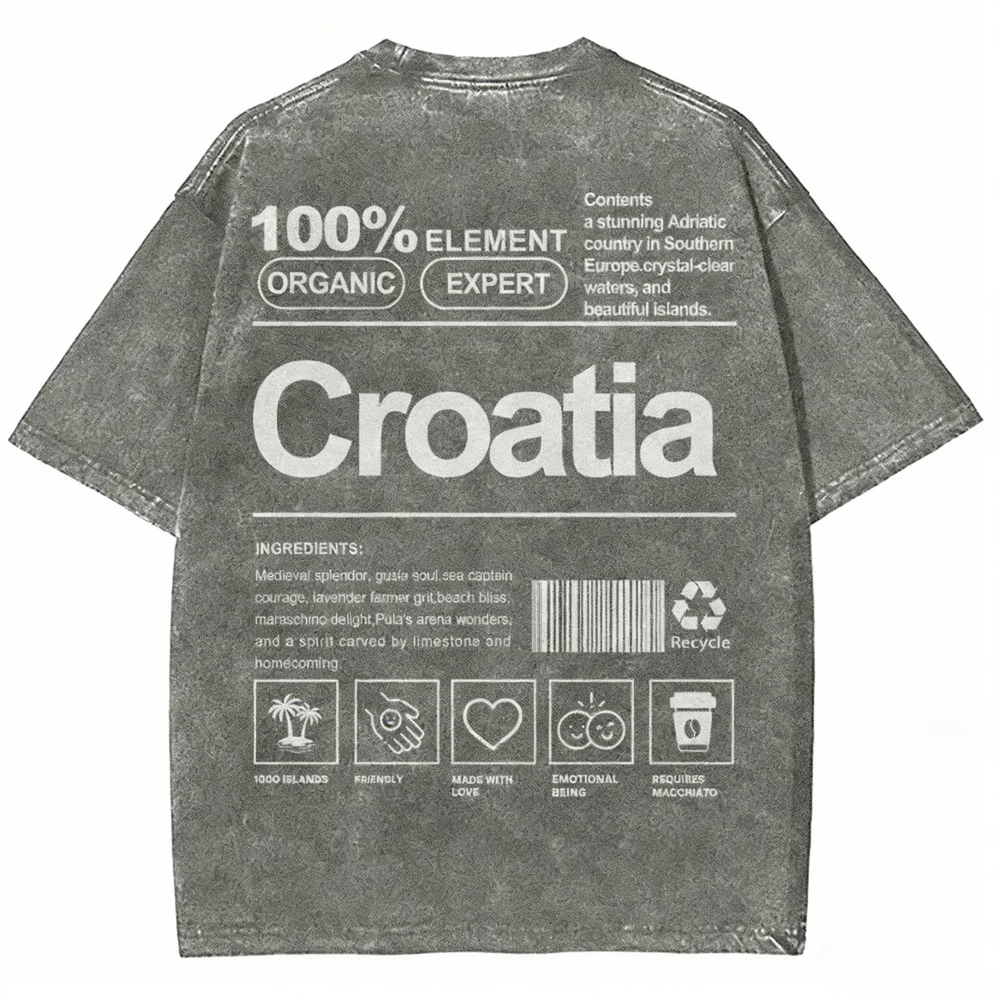 Croatia Unisex Fit Washed T-shirt