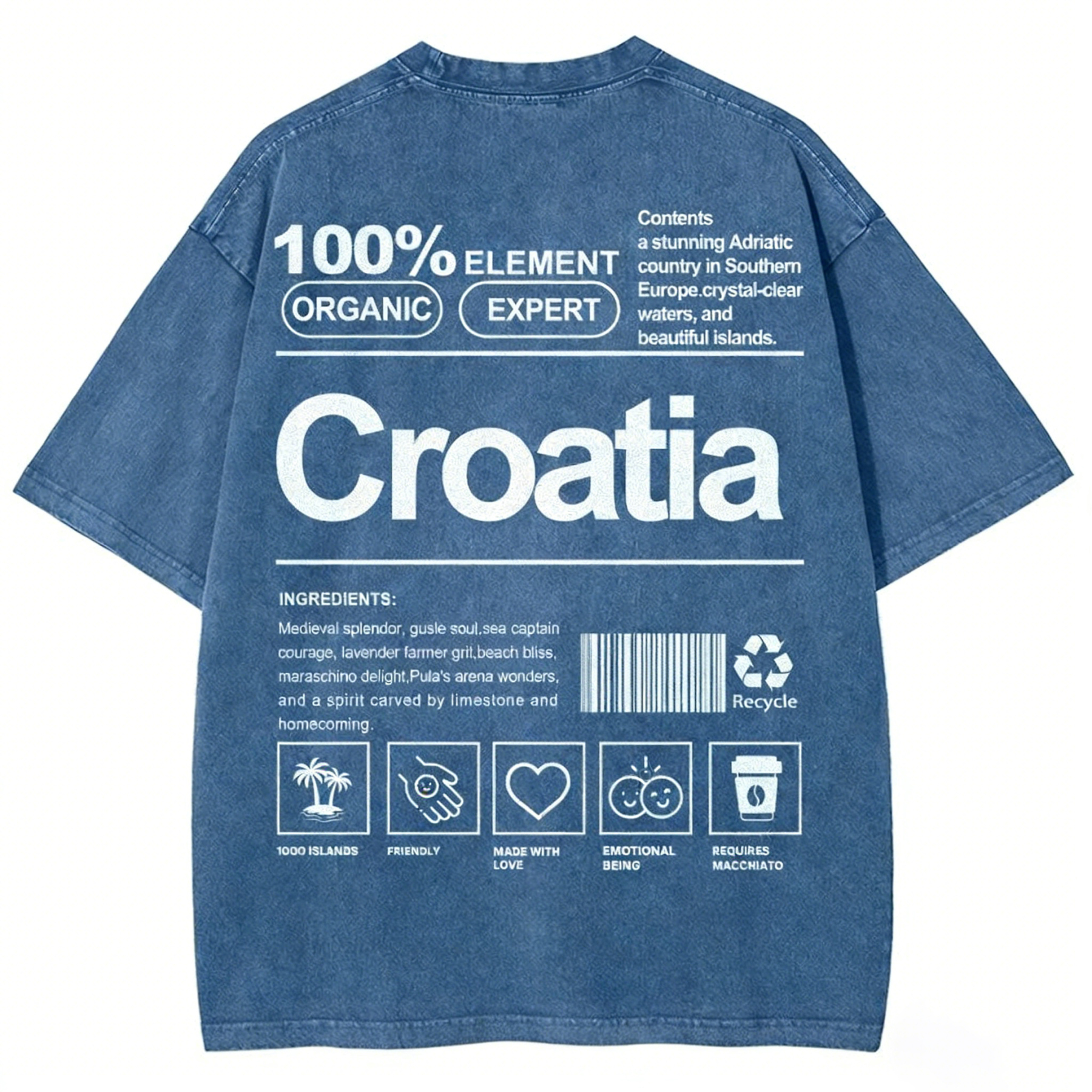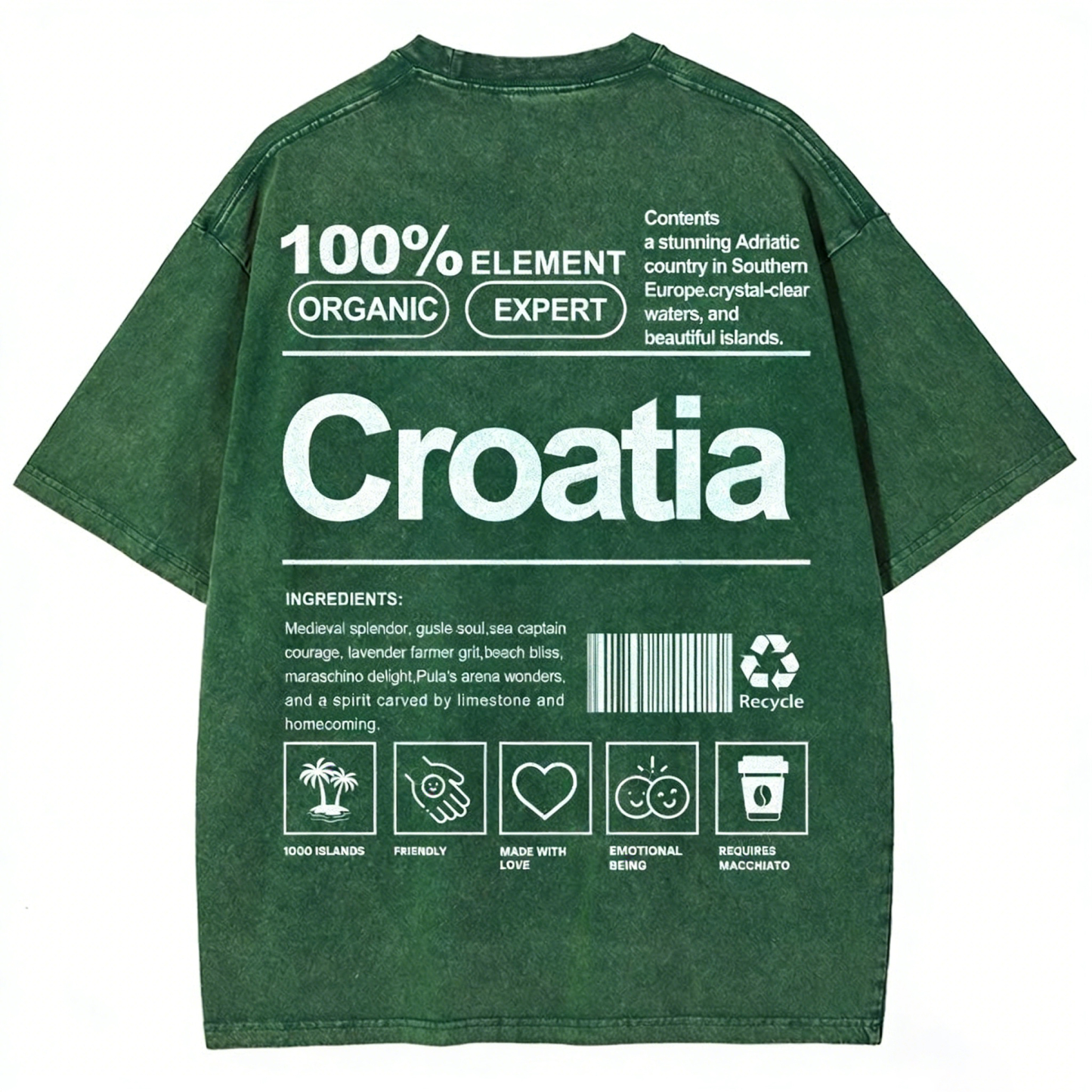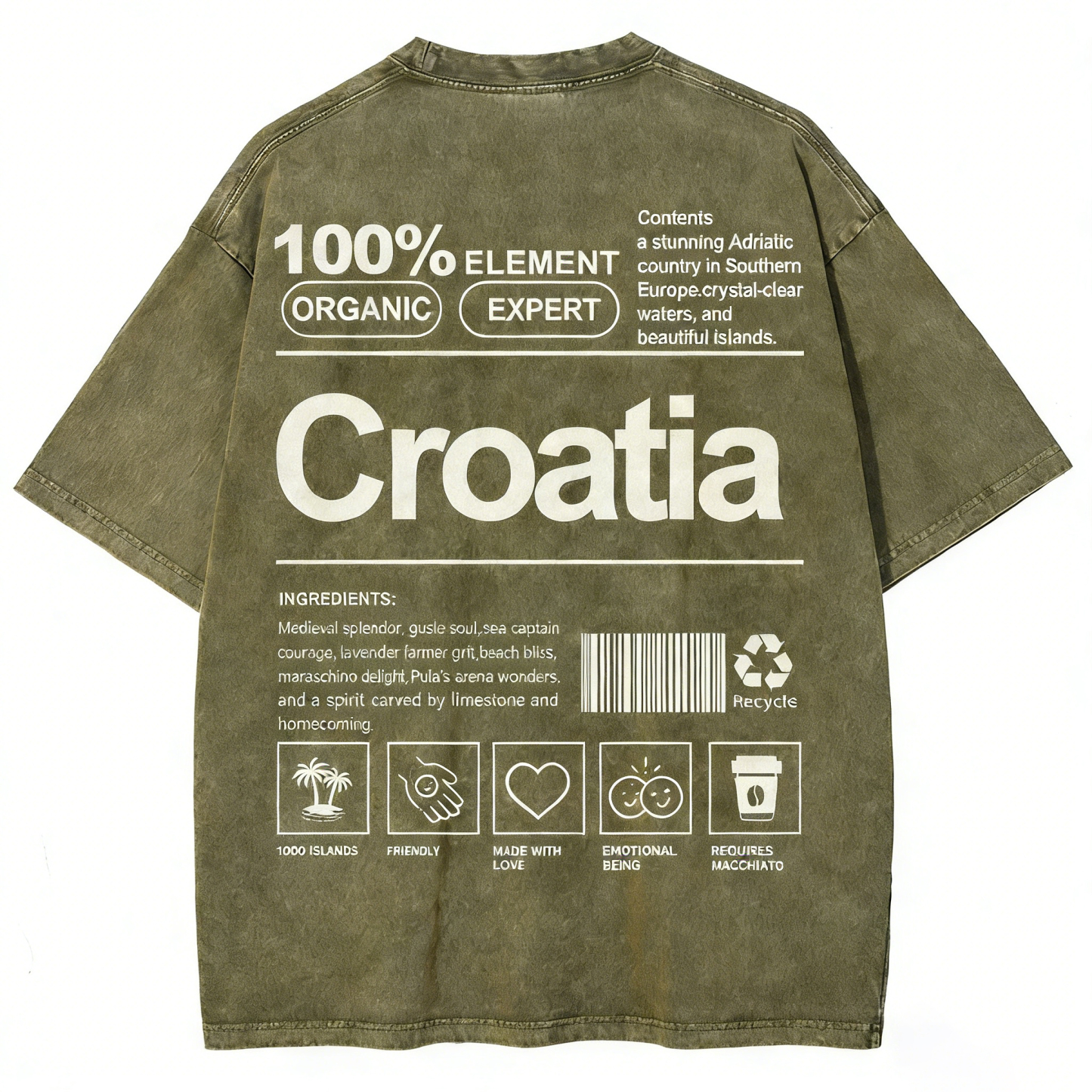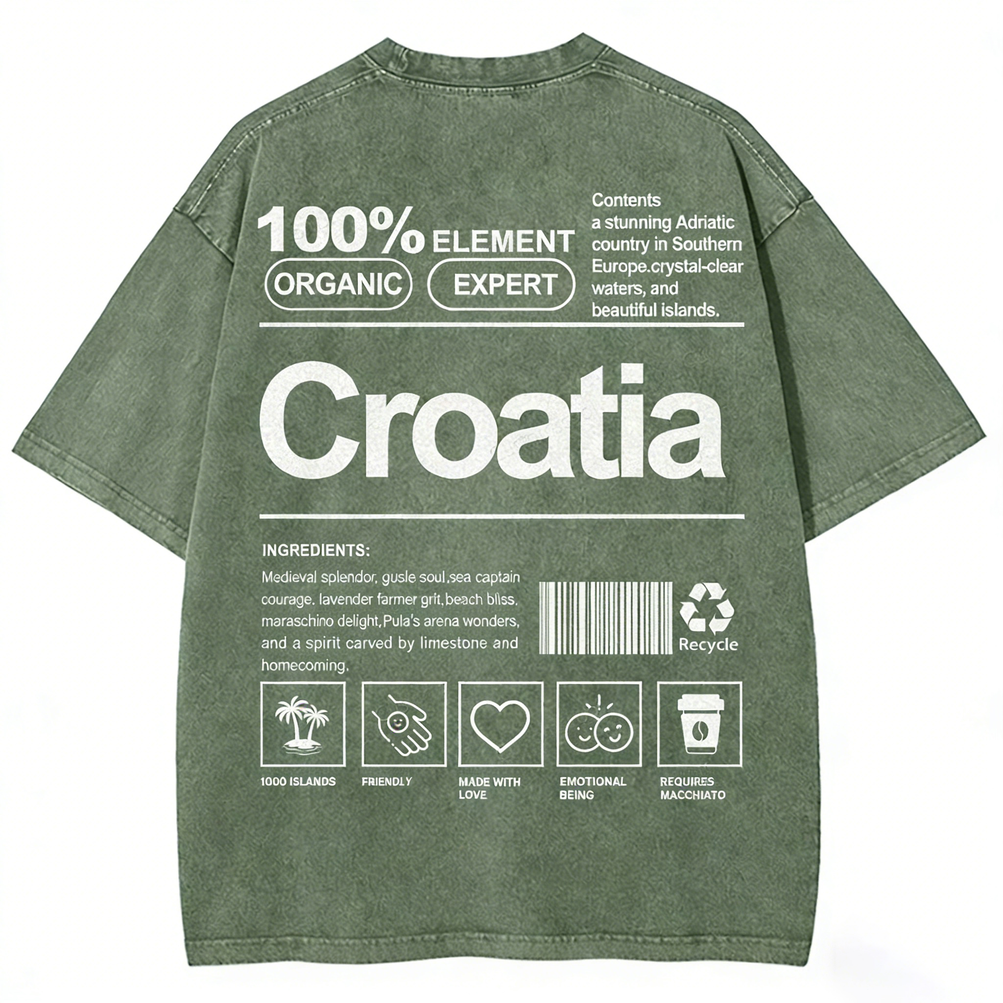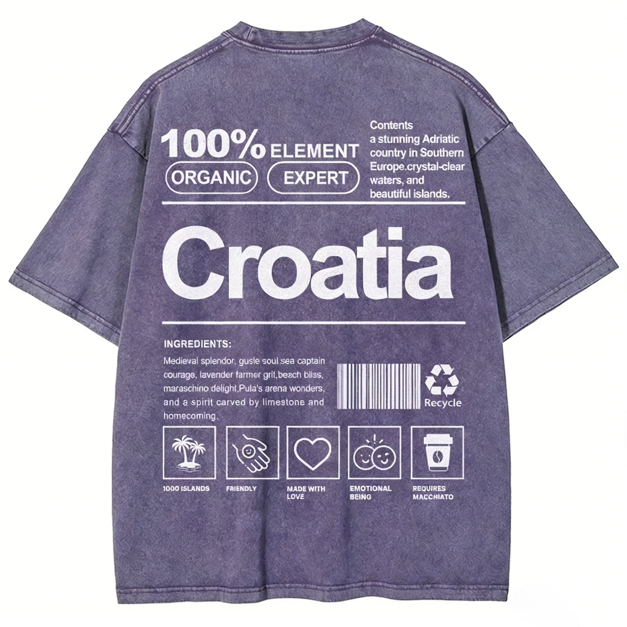 Croatia Unisex Fit Washed T-shirt
