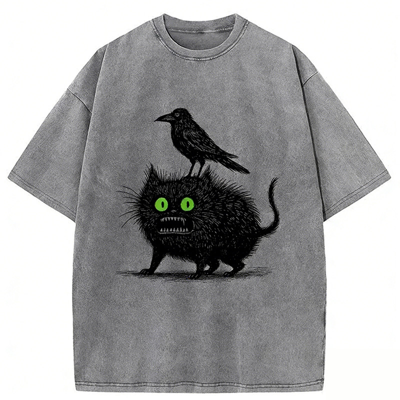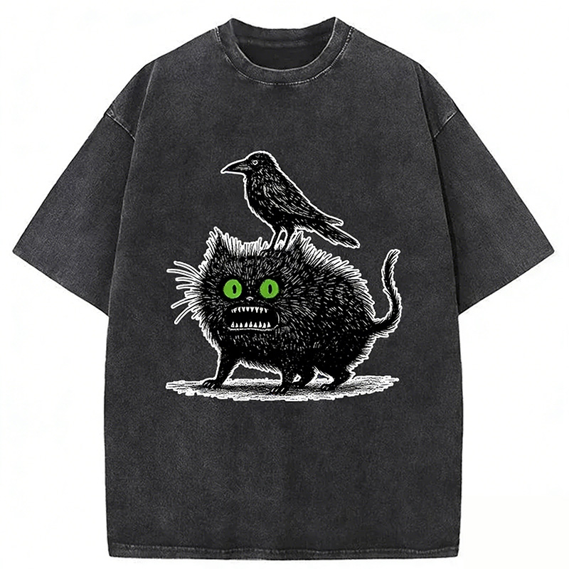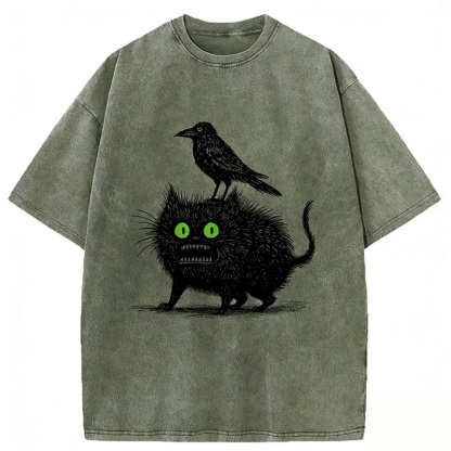Crow And Black Cat Washed T-shirt