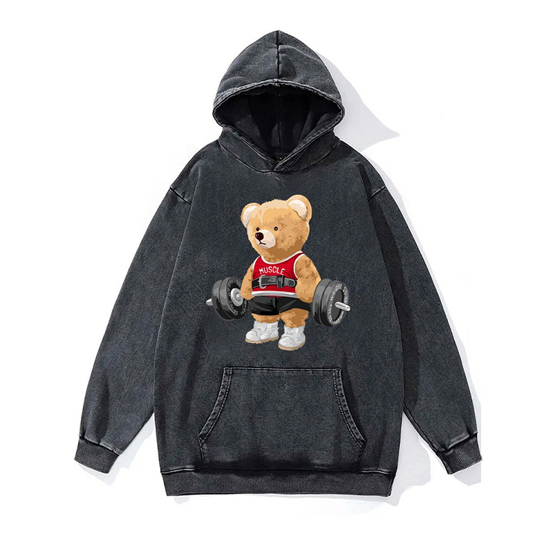 Exercise Bear Washed Gym Hoodie