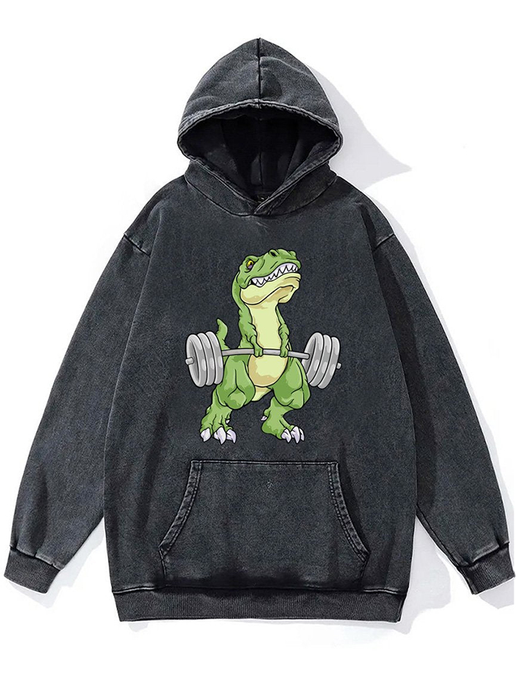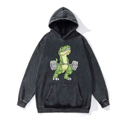 Funny Dinosaur Weightlifting Washed Gym Hoodie