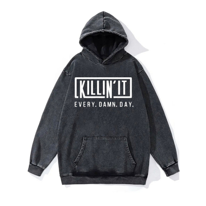 Killing It Every Damn Day Washed Gym Hoodie